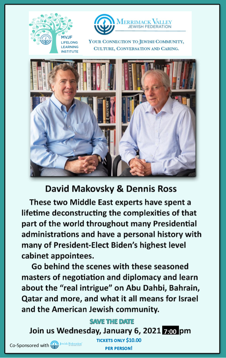 Click link to register: https://merrimackvalley.ticketspice.com/david-makovsky-and-dennis-ross