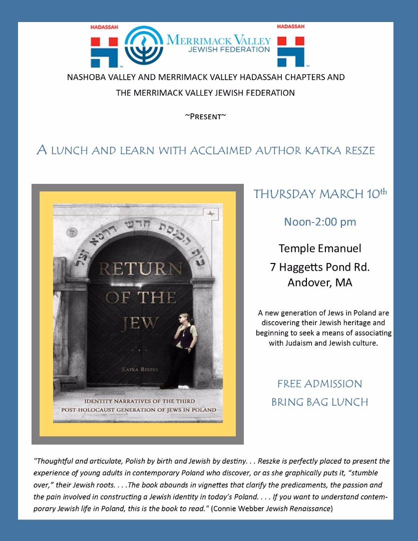 Sponsor: Nashoba Valley and Merrimack Valley Chapters of Hadassah and Merrimack Valley Jewish Federation