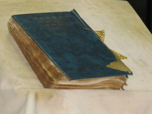 Above is a siddur found in the Orthodox shul in Havana. It was new during the 1930s and 1940s, when the Jewish community of 15,000 flourished. Its condition today is suggestive of the difficult life faced by our remaining 1,500 Cuban brothers and sisters, yet its proud and prominent display speaks to the hopeful renewal of Jewish life on the Island.